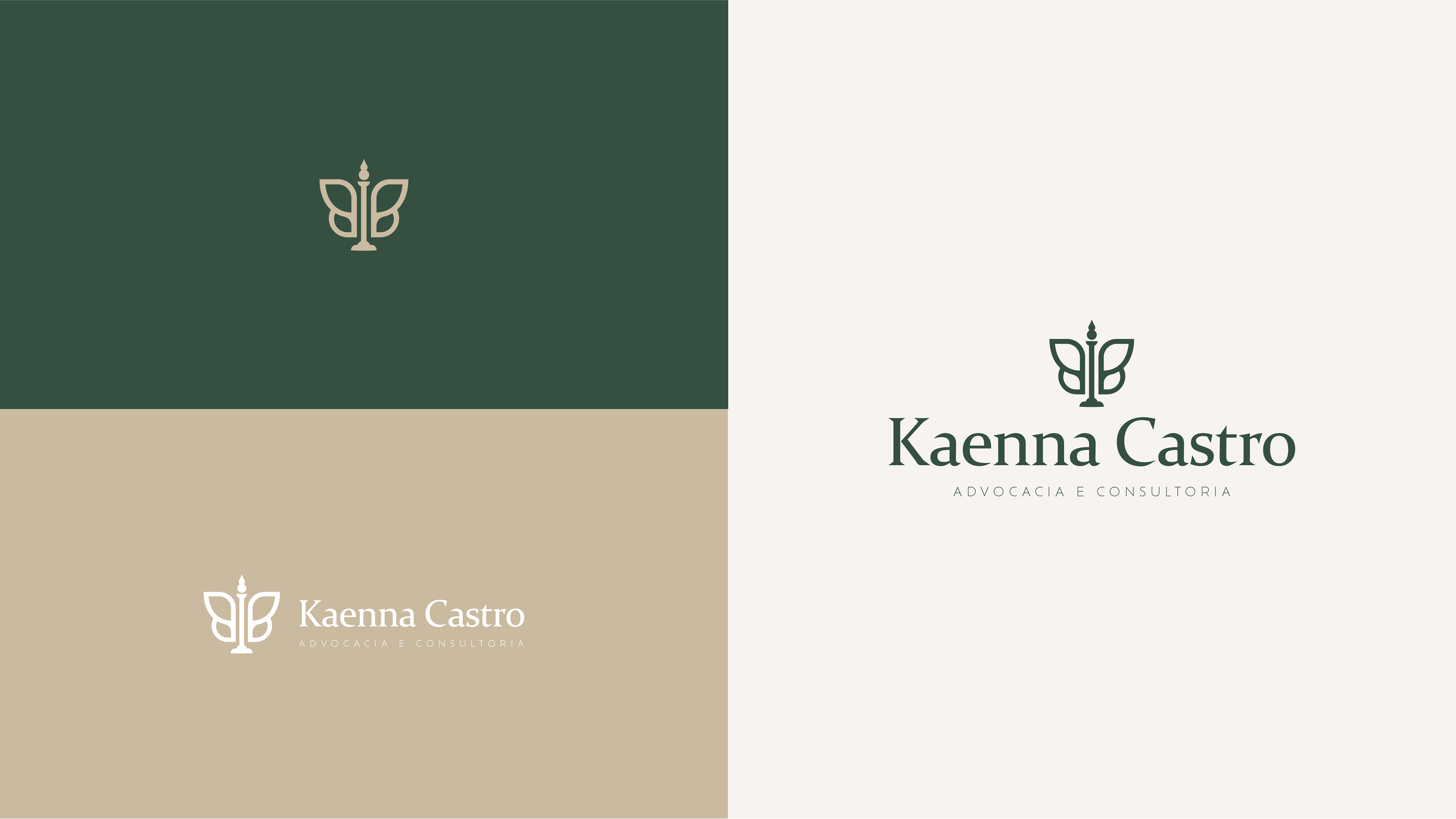 Quanto ao logotipo, escolhemos uma tipografia serifada e personalizada. O peso da fonte é Bold, o que fala sobre a força e a coragem, mas as serifas adicionam um toque de elegância, enquanto a personalização traz autenticidade e modernidade. A marca é delicada, mas corajosa, assim como Kaenna.